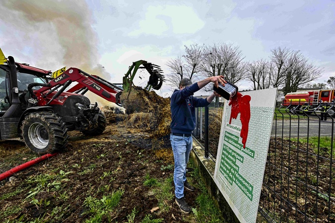 Les Agriculteurs déversent du fumier devant la Direction Départementale du Territoire à Agen, le 23 janvier 2024. © Thierry Breton / Panoramic / Bestimage Farmers dump manure in front of the Departmental Territorial Directorate in Agen, January 23, 2024.