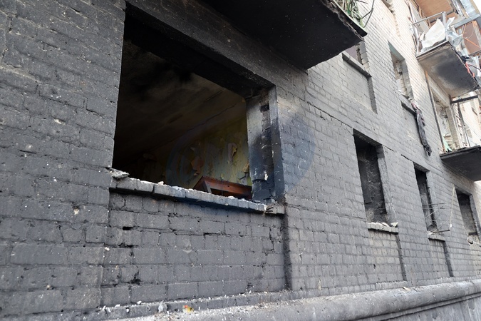 KHARKIV, UKRAINE - JANUARY 23, 2024 - A residential building shows damage caused by the Russian missile attack on Kharkiv, northeastern Ukraine. As reported, the Russian missile strike which took place Tuesday morning, January 23, has claimed the lives of seven people and has left 63 people injured in the northeastern Ukrainian city of Kharkiv., Credit:Vyacheslav Madiyevskyy / Avalon