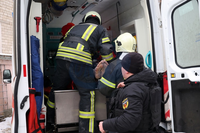 KHARKIV, UKRAINE - JANUARY 23, 2024 - Rescuers put an injured person into an ambulance after the Russian missile attack on Kharkiv, northeastern Ukraine. As reported, the Russian missile strike which took place Tuesday morning, January 23, has claimed the lives of seven people and has left 63 people injured in the northeastern Ukrainian city of Kharkiv., Credit:Vyacheslav Madiyevskyy / Avalon