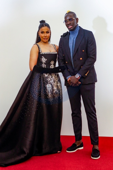 Mamadou Sakho et sa femme Majda Sakho au photocall du défilé Stéphane Rolland Haute Couture Printemps/Été 2024 dans le cadre de la Fashion Week de Paris (PFW) à la Salle Pleyel, à Paris, France, le 23 janvier 2024. © Christophe Clovis/Bestimage Stéphane Rolland Fashion Show Haute Couture Spring/Summer 2024 during Paris Fashion Week, January 23rd, 2024.