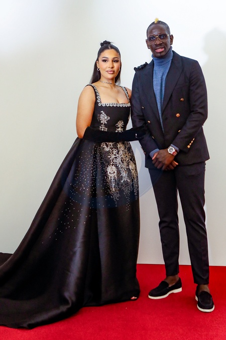 Mamadou Sakho et sa femme Majda Sakho au photocall du défilé Stéphane Rolland Haute Couture Printemps/Été 2024 dans le cadre de la Fashion Week de Paris (PFW) à la Salle Pleyel, à Paris, France, le 23 janvier 2024. © Christophe Clovis/Bestimage Stéphane Rolland Fashion Show Haute Couture Spring/Summer 2024 during Paris Fashion Week, January 23rd, 2024.