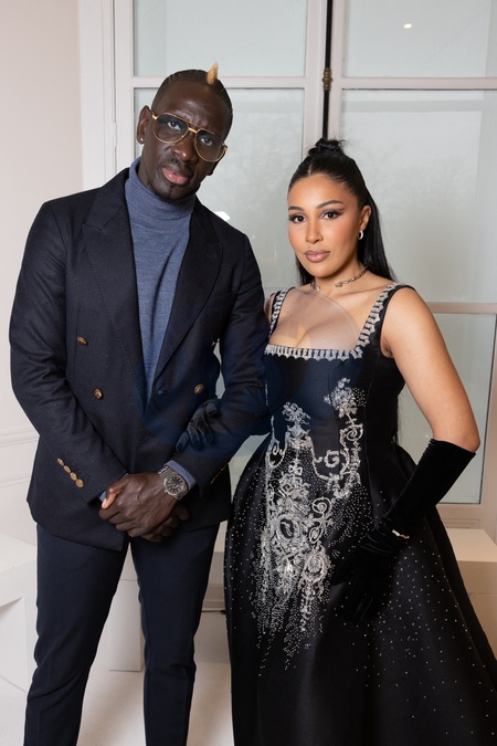 Majda et Mamadou Sakho au front row du défilé Alexis Mabille Haute Couture Printemps/Été 2024 dans le cadre de la Fashion Week de Paris (PFW), chez Christie's Avenue Matignon, à Paris, France, le 23 janvier 2024. © Jeremy Melloul/Bestimage Celebs attend the Alexis Mabille Haute Couture Spring/Summer 2024 show as part of Paris Fashion Week (PFW), at Christie's Avenue Matignon, in Paris, France, on January 23, 2024.