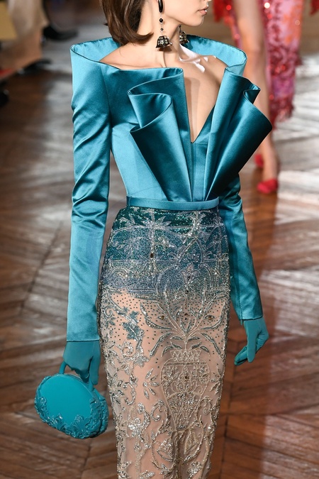 Georges Hobeika Model On Catwalk, Paris Haute Couture Fashion Week 2024 HC For Spring Summer, Defile, Fashion Show Runway Collection, Modelwear, Modeschau Laufsteg France, CloseUp, Accessories, details,PARHCS24, Credit:www.fashionpps.com / Avalon
