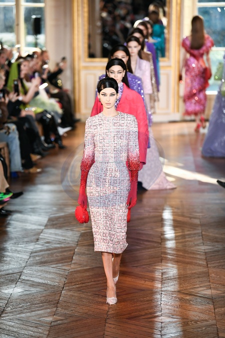Georges Hobeika Model On Catwalk, Paris Haute Couture Fashion Week 2024 HC For Spring Summer, Defile, Fashion Show Runway Collection, Modelwear, Modeschau Laufsteg France, PARHCS24, Credit:www.fashionpps.com / Avalon