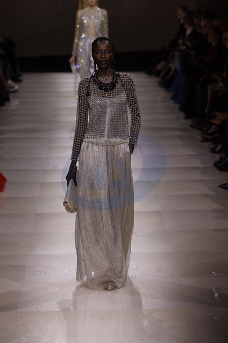 Défilé Giorgio Armani "Collection Haute Couture Printemps/Eté 2024" lors de la Fashion Week de Paris (PFW), le 23 janvier 2024. Giorgio Armani Fashion Show "Haute Couture Spring/Summer 2024" during Paris Fashion Week, January 23rd, 2024.