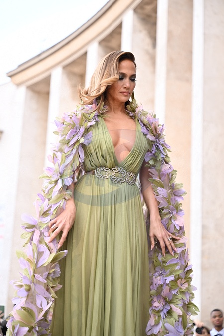 Jennifer Lopez arrive au défilé Elie Saab Haute Couture Printemps/Été 2024 dans le cadre de la Fashion Week de Paris (PFW) le 24 janvier 2024. © Pierre Perusseau - Tiziano Da Silva / Bestimage Jennifer Lopez arrives at the Elie Saab Haute Couture Spring/Summer 2024 show as part of Paris Fashion Week (PFW) on January 24, 2024.