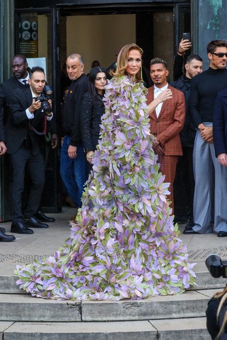 Jennifer Lopez (JLo) pojawia się na pokazie Elie Saab Haute Couture wiosna/lato 2024 w ramach Tygodnia Mody w Paryżu