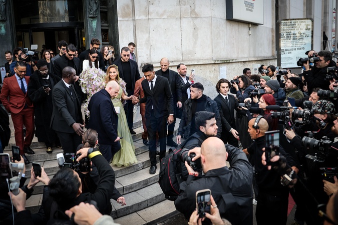 Jennifer Lopez (JLo) opuszcza pokaz Elie Saab Haute Couture wiosna/lato 2024 w ramach Paris Fashion Week (PFW)