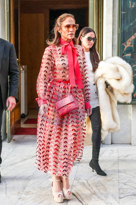 Jennifer Lopez (JLo) à la sortie du restaurant Gigi pour se rendre au défilé Valentino en marge de la Fashion Week de Paris (PFW)