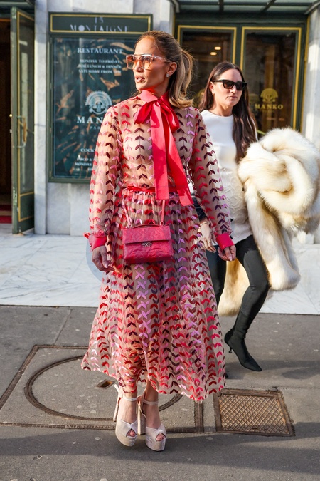 Jennifer Lopez (JLo) à la sortie du restaurant Gigi pour se rendre au défilé Valentino en marge de la Fashion Week de Paris (PFW)