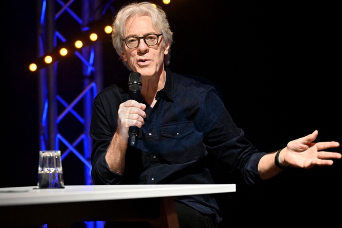 Exclusif - Stewart Copeland, musicien, batteur et fondateur du groupe The Police, parrain du MIDEM+24, a participé à une masterclass avec les étudiants du campus Georges-Méliès à Cannes, le 24 janvier 2024. Après avoir visité les infrastructures de ce campus qui propose de nombreuses formations dédiés aux écritures créatives et aux métiers de l'image, de niveau Bac à Bac+8, en programme court, long ou en formation continue, il a fait un arrêt sur la plateau tv des "Pitchouns" avant de rejoindre l'amphithéâtre et répondre aux questions d'Albin Lewi, le directeur artistique du festival CANNESERIES. Pendant plus d'une heure, il a parlé musique, intelligence artificielle mais il a surtout abordé son travail comme compositeur de musique de film. © Bruno Bebert / Bestimage Exclusive - For Germany Call for price - Stewart Copeland, from the Police group, in masterclass with the students of the Georges-Méliès campus in Cannes, during the MIDEM+24. On January 24th 2024