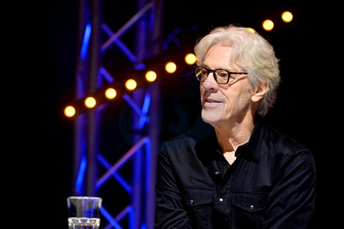 Exclusif - Stewart Copeland, musicien, batteur et fondateur du groupe The Police, parrain du MIDEM+24, a participé à une masterclass avec les étudiants du campus Georges-Méliès à Cannes, le 24 janvier 2024. Après avoir visité les infrastructures de ce campus qui propose de nombreuses formations dédiés aux écritures créatives et aux métiers de l'image, de niveau Bac à Bac+8, en programme court, long ou en formation continue, il a fait un arrêt sur la plateau tv des "Pitchouns" avant de rejoindre l'amphithéâtre et répondre aux questions d'Albin Lewi, le directeur artistique du festival CANNESERIES. Pendant plus d'une heure, il a parlé musique, intelligence artificielle mais il a surtout abordé son travail comme compositeur de musique de film. © Bruno Bebert / Bestimage Exclusive - For Germany Call for price - Stewart Copeland, from the Police group, in masterclass with the students of the Georges-Méliès campus in Cannes, during the MIDEM+24. On January 24th 2024