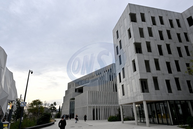 Exclusif - Stewart Copeland, musicien, batteur et fondateur du groupe The Police, parrain du MIDEM+24, a participé à une masterclass avec les étudiants du campus Georges-Méliès à Cannes, le 24 janvier 2024. Après avoir visité les infrastructures de ce campus qui propose de nombreuses formations dédiés aux écritures créatives et aux métiers de l'image, de niveau Bac à Bac+8, en programme court, long ou en formation continue, il a fait un arrêt sur la plateau tv des "Pitchouns" avant de rejoindre l'amphithéâtre et répondre aux questions d'Albin Lewi, le directeur artistique du festival CANNESERIES. Pendant plus d'une heure, il a parlé musique, intelligence artificielle mais il a surtout abordé son travail comme compositeur de musique de film. © Bruno Bebert / Bestimage Exclusive - For Germany Call for price - Stewart Copeland, from the Police group, in masterclass with the students of the Georges-Méliès campus in Cannes, during the MIDEM+24. On January 24th 2024