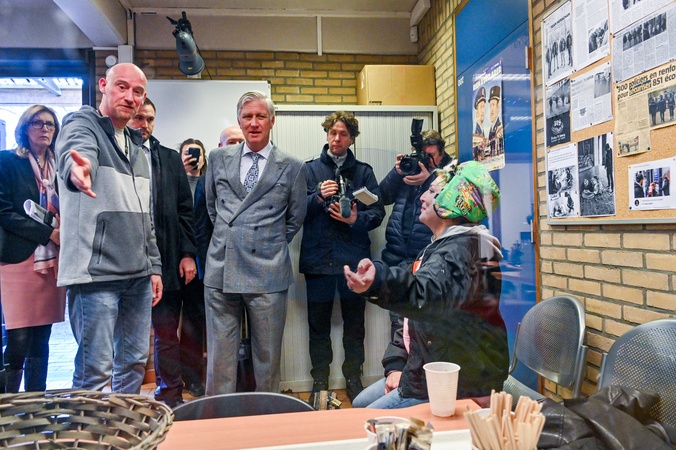 Król Belgii Filip odwiedza zespół Herscham Team ze strefy policyjnej Brukseli Capital-Ixelles, który pomaga głównie bezdomnym