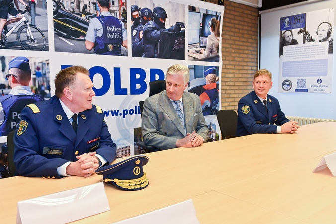 Le roi Philippe de Belgique en visite à une équipe de la zone de police de Bruxelles Capitale-Ixelles, Herscham Team, qui vient en aide principalement aux sans-abris