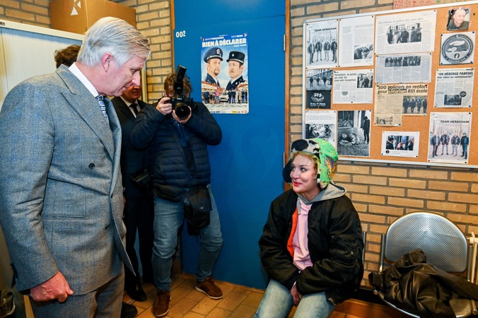 Król Belgii Filip odwiedza zespół Herscham Team ze strefy policyjnej Brukseli Capital-Ixelles, który pomaga głównie bezdomnym