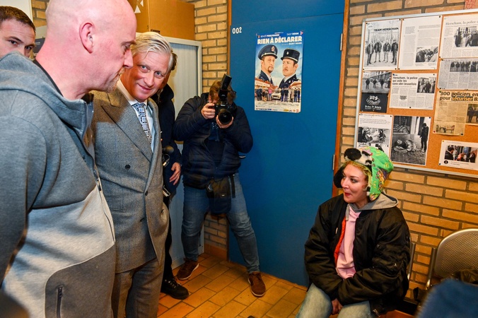 Le roi Philippe de Belgique en visite à une équipe de la zone de police de Bruxelles Capitale-Ixelles, Herscham Team, qui vient en aide principalement aux sans-abris