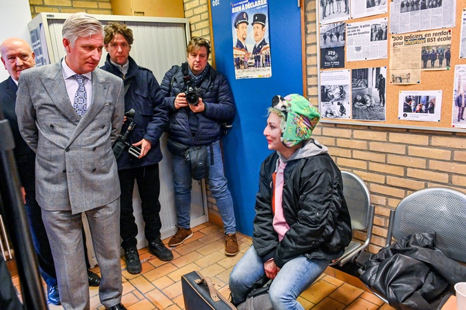 Le roi Philippe de Belgique en visite à une équipe de la zone de police de Bruxelles Capitale-Ixelles, Herscham Team, qui vient en aide principalement aux sans-abris