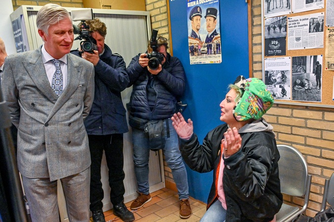 Król Belgii Filip odwiedza zespół Herscham Team ze strefy policyjnej Brukseli Capital-Ixelles, który pomaga głównie bezdomnym
