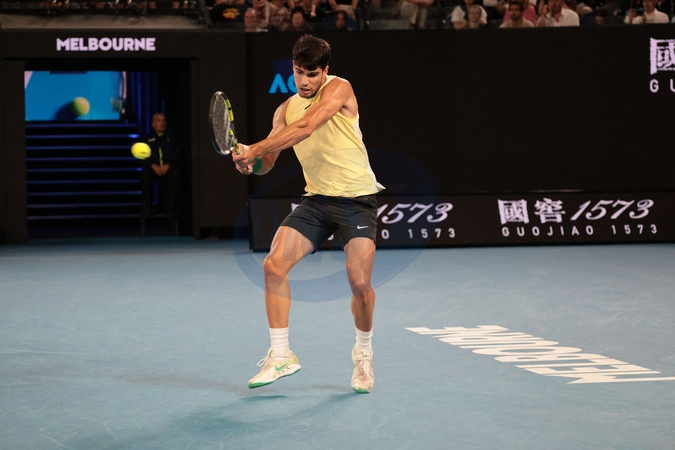 Carlos Alcaraz - C.Alcaraz battu par A.Zverev (6-1, 6-3, 6-7 [2], 6-4) à l'Open d'Australie à Melbourne, le 24 janvier 2024. Il affrontera D.Medvedev en demi-finale. © Panoramic / Bestimage C.Alcaraz beaten by A.Zverev (6-1, 6-3, 6-7 [2], 6-4) at the Australian Open in Melbourne, January 24, 2024. He will face D.Medvedev in the semi-finals -final.