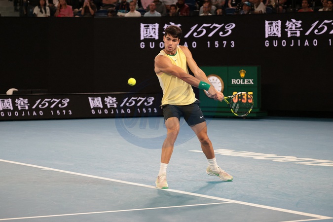 Carlos Alcaraz - C.Alcaraz battu par A.Zverev (6-1, 6-3, 6-7 [2], 6-4) à l'Open d'Australie à Melbourne, le 24 janvier 2024. Il affrontera D.Medvedev en demi-finale. © Panoramic / Bestimage C.Alcaraz beaten by A.Zverev (6-1, 6-3, 6-7 [2], 6-4) at the Australian Open in Melbourne, January 24, 2024. He will face D.Medvedev in the semi-finals -final.