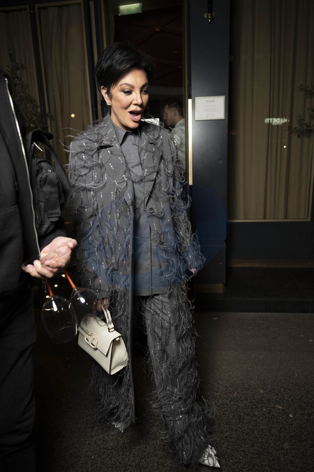 Kylie Jenner est allée dîner avec sa fille Stormi et sa mère Kris Jenner avec son compagnon Corey Gamble au restaurant Giusé Trattoria lors de la Fashion Week à Paris le 24 janvier 2024. Merci de flouter le visage des enfants avant publication Kylie Jenner went to dinner with her daughter Stormi and her mother Kris Jenner with her companion Corey Gamble at the Giusé Trattoria restaurant during Fashion Week in Paris on January 24, 2024.