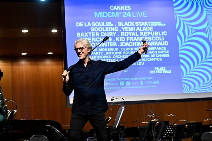 Jean-Michel Jarre lors de la soirée d'ouverture du MIDEM+24 au Palais des Festivals à Cannes