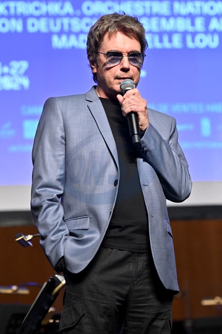 Jean Michel Jarre durant la soirée d'ouverture du MIDEM+24, salle Debussy au Palais des Festivals à Cannes, le 24 janvier 2024. D.Lisnard, le maire de Cannes, entouré de J.M.Jarre et B.Désveaux, le directeur général du groupe Hopscotch, ont lancé cette soirée avant que les parrains S.Copeland et Y.Alade déclarent officiellement le MIDEM+24 ouvert. C'est l'orchestre national de Cannes dirigé par P.A.Valade avec à la flute F.Bontron et Y.Deutsch à la guitare qui a débuté les concerts qui vont se succéder jusqu'au 27 janvier. Le MIDƐM+ est le rendez-vous incontournable de l'industrie musicale, dans sa nouvelle formule initiée par la ville de Cannes et le Palais des Festivals et des Congrès, rassemble toute la profession. Ce salon est aussi une grande fête pour le grand public avec des concerts, des DJ sets et des show cases. © Bruno Bebert / Bestimage MIDEM+24 opening night at the Palais des Festivals in Cannes. On January 24th 2024