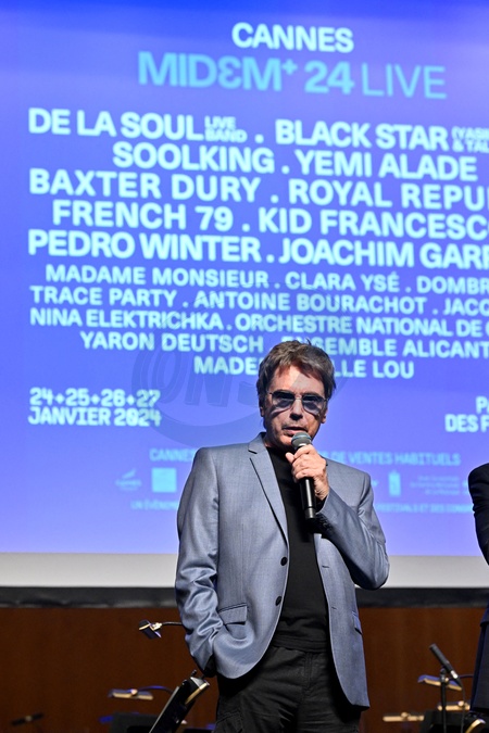 Jean-Michel Jarre lors de la soirée d'ouverture du MIDEM+24 au Palais des Festivals à Cannes