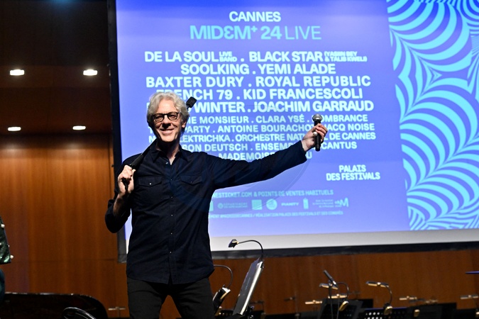 Jean-Michel Jarre lors de la soirée d'ouverture du MIDEM+24 au Palais des Festivals à Cannes