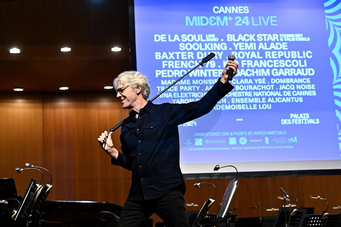 Jean-Michel Jarre lors de la soirée d'ouverture du MIDEM+24 au Palais des Festivals à Cannes