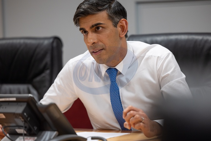 22/01/2024. London, United Kingdom. The Prime Minister Rishi Sunak talks to the President of the United States of America Joe Biden. 10 Downing Street., Credit:Simon Walker / Avalon