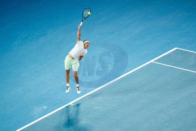 Alexander Zverev (GER) lors du quart de finale de l'Open d'Australie au Rod Laver Arena à Melbourne, Australie, le 25 janvier 2024. A. Zverev gagne 6-1, 6-3, 6-7 [2], 6-4. © Virginie Bouyer/Panoramic/Bestimage Quarterfinals singles match between Carlos Alcaraz of Spain and Alexander Zverev of Germany during the 2024 Australian Open at Melbourne Park on January 24, 2024 in Melbourne, Australia.