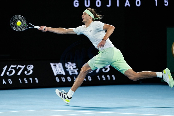 Alexander Zverev (GER) lors du quart de finale de l'Open d'Australie au Rod Laver Arena à Melbourne, Australie, le 25 janvier 2024. A. Zverev gagne 6-1, 6-3, 6-7 [2], 6-4. © Virginie Bouyer/Panoramic/Bestimage Quarterfinals singles match between Carlos Alcaraz of Spain and Alexander Zverev of Germany during the 2024 Australian Open at Melbourne Park on January 24, 2024 in Melbourne, Australia.