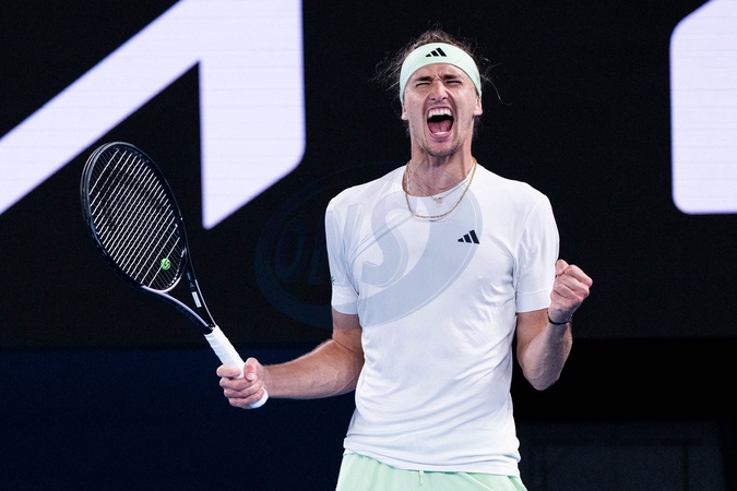 Alexander Zverev (GER) lors du quart de finale de l'Open d'Australie au Rod Laver Arena à Melbourne, Australie, le 25 janvier 2024. A. Zverev gagne 6-1, 6-3, 6-7 [2], 6-4. © Virginie Bouyer/Panoramic/Bestimage Quarterfinals singles match between Carlos Alcaraz of Spain and Alexander Zverev of Germany during the 2024 Australian Open at Melbourne Park on January 24, 2024 in Melbourne, Australia.