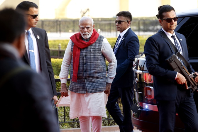 Le Premier ministre indien Narendra Modi arrive au Jantar Mantar à Jaipur le 25 janvier 2024. © Ludovic Marin/Pool/Bestimage India's Prime Minister Narendra Modi arrives at Jantar Mantar in Jaipur on January 25, 2024. President Emmanuel Macron arrives as the guest of honour in India on January 25, 2024, with a sumptuous palace feast and colourful military parade, as France eyes lucrative deals with the world's fifth-biggest economy.