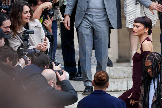 Zendaya arrive au défilé Fendi Haute Couture Printemps/Été 2024 dans le cadre de la Fashion Week de Paris (PFW), rue des Francs Bourgeois à Paris, France, le 25 janvier 2024. © Cyril Moreu/Bestimage Zendaya arrives at the Fendi Haute Couture Spring/Summer 2024 show as part of Paris Fashion Week (PFW), in Paris, France, on January 25, 2024.