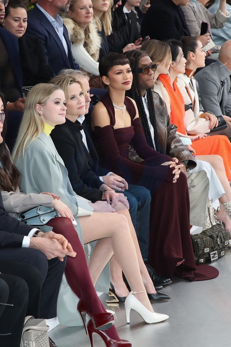 Reese Witherspoon avec sa fille Ava Elizabeth Phillippe, Michael Burke (Président du Fashion group de LVMH) et Zendaya au front row du défilé Fendi Haute Couture Printemps/Été 2024 dans le cadre de la Fashion Week de Paris (PFW), au palais Brongniart à Paris, France, le 25 janvier 2024. © Bertrand Rindoff/Bestimage Front Row Fendi Haute Couture Spring/Summer 2024 show as part of Paris Fashion Week (PFW), in Paris, France, on January 25, 2024.