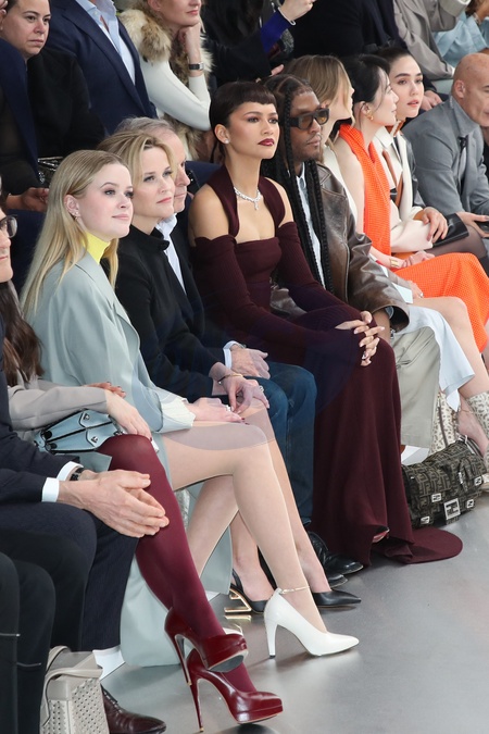 Reese Witherspoon avec sa fille Ava Elizabeth Phillippe, Michael Burke (Président du Fashion group de LVMH) et Zendaya au front row du défilé Fendi Haute Couture Printemps/Été 2024 dans le cadre de la Fashion Week de Paris (PFW), au palais Brongniart à Paris, France, le 25 janvier 2024. © Bertrand Rindoff/Bestimage Front Row Fendi Haute Couture Spring/Summer 2024 show as part of Paris Fashion Week (PFW), in Paris, France, on January 25, 2024.