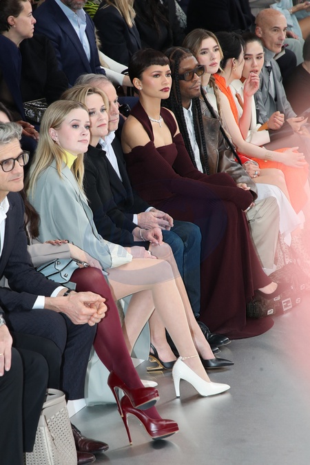 Reese Witherspoon avec sa fille Ava Elizabeth Phillippe, Michael Burke (Président du Fashion group de LVMH) et Zendaya au front row du défilé Fendi Haute Couture Printemps/Été 2024 dans le cadre de la Fashion Week de Paris (PFW), au palais Brongniart à Paris, France, le 25 janvier 2024. © Bertrand Rindoff/Bestimage Front Row Fendi Haute Couture Spring/Summer 2024 show as part of Paris Fashion Week (PFW), in Paris, France, on January 25, 2024.