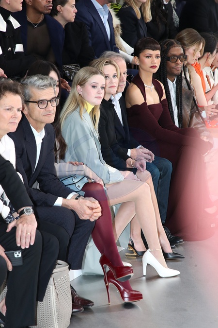Serge Brunschwig, Reese Witherspoon avec sa fille Ava Elizabeth Phillippe, Michael Burke (Président du Fashion group de LVMH) et Zendaya au front row du défilé Fendi Haute Couture Printemps/Été 2024 dans le cadre de la Fashion Week de Paris (PFW), au palais Brongniart à Paris, France, le 25 janvier 2024. © Bertrand Rindoff/Bestimage Front Row Fendi Haute Couture Spring/Summer 2024 show as part of Paris Fashion Week (PFW), in Paris, France, on January 25, 2024.