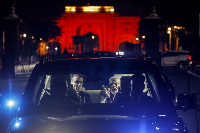 Prezydent Francji Emmanuel Macron i premier Indii Narendra Modi podczas roadshow w Jaipur