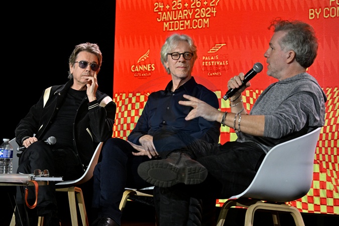 Jean-Michel Jarre et Stewart Coppeland (Police) participent à une table ronde "Vers la singularité : quand les artistes et l’IA transcendent le GPTs" lors du Midem à Cannes