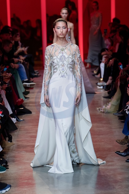 Elie Saab Model On Catwalk, Paris Haute Couture Fashion Week 2024 HC For Spring Summer, Defile, Fashion Show Runway Collection, Modelwear, Modeschau Laufsteg France, PARHCS24, Credit:www.fashionpps.com / Avalon