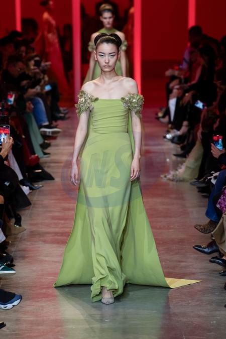 Elie Saab Model On Catwalk, Paris Haute Couture Fashion Week 2024 HC For Spring Summer, Defile, Fashion Show Runway Collection, Modelwear, Modeschau Laufsteg France, PARHCS24, Credit:www.fashionpps.com / Avalon