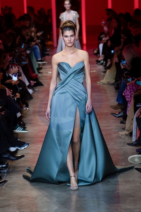 Elie Saab Model On Catwalk, Paris Haute Couture Fashion Week 2024 HC For Spring Summer, Defile, Fashion Show Runway Collection, Modelwear, Modeschau Laufsteg France, PARHCS24, Credit:www.fashionpps.com / Avalon