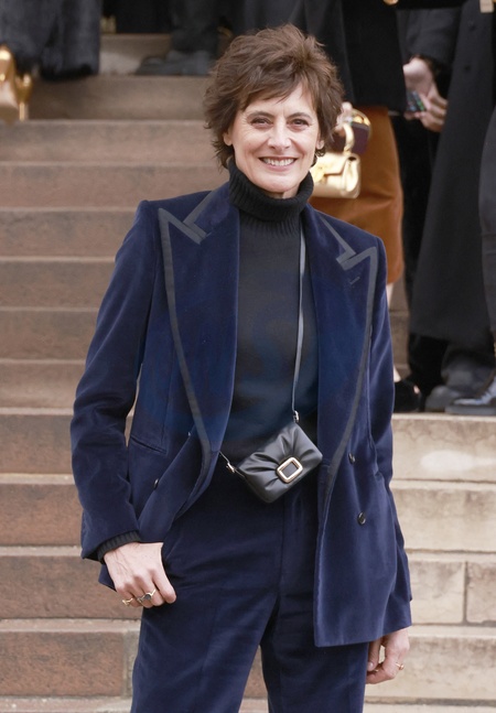 Inès de la Fressange - Arrivées au défilé de mode Schiaparelli Haute Couture printemps/été 2024 (PFW) à Paris le 22 janvier 2024. © Christophe Aubert via Bestimage Arrivals at the Schiaparelli Haute Couture spring/summer 2024 (PFW) fashion show in Paris on 22 January 2024.