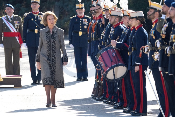 La reine Sofia lors de l'acte de serment devant le drapeau à la caserne "El Rey" de la Garde royale à Madrid, le 26 janvier 2024. Queen Sofia attends the Flag ceremony at the Cuartel del Rey. El Pardo, Madrid. January 26th, 2024.