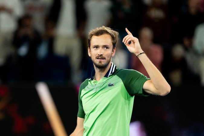 Daniil Medvedev remporte la demi-finale face à A.Zverev (5-7, 3-6, 7-6, 7-6, 6-3) lors de l'Open d'Australie à Melbourne, le 26 janvier 2024. © Virginie Bouyer / Panoramic / Bestimage Daniil Medvedev wins the semi-final against A.Zverev (5-7, 3-6, 7-6, 7-6, 6-3) at the Australian Open in Melbourne, January 26, 2024.