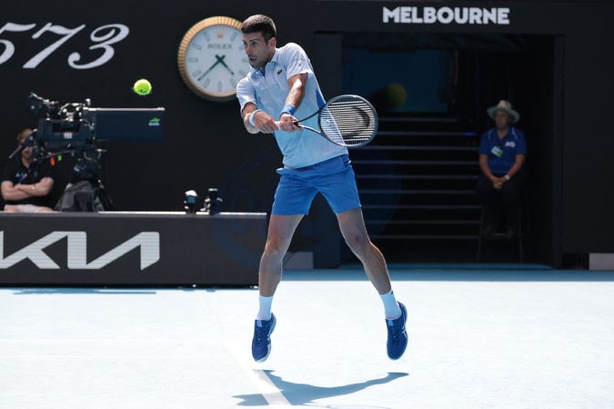 Novak Djokovic éliminé en demi-finale par J.Sinner (6-1, 6-2, 6-7 [8-6], 6-3) lors de l'Open d'Australie à Melbourne, le 26 janvier 2024. © Panoramic / Bestimage Novak Djokovic eliminated in the semi-final by J.Sinner (6-1, 6-2, 6-7 [8-6], 6-3) at the Australian Open in Melbourne, January 26, 2024.